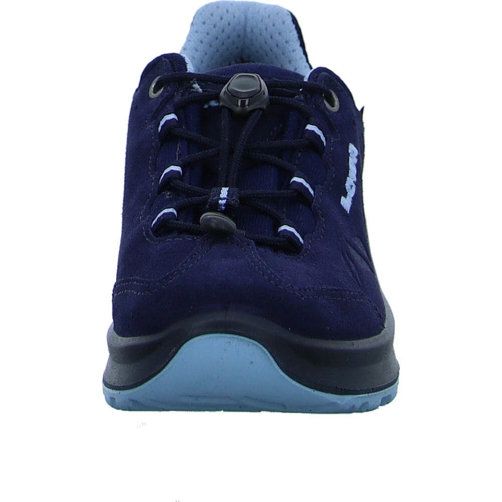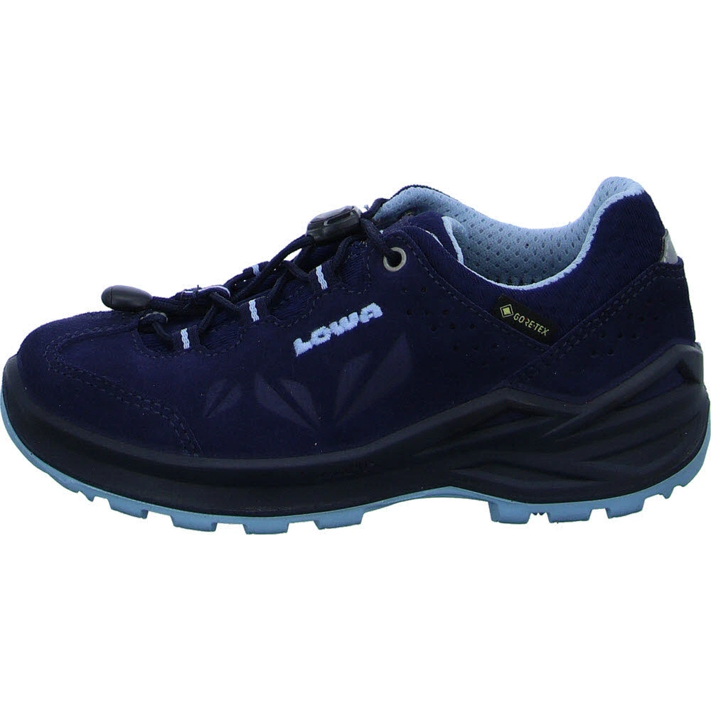 Outdoor-Mädchen aufgepasst! Mit dem sportlichen Multifunktionsschuh MARIE II GTX LO aus robustem Veloursleder mit verspielten Prägungen können kleine Abenteuerinnen direkt losziehen. Für den einfach Ein- und Ausstieg sorgt die praktische Speed-Lace-Schnürung, während der LOWA-MONOWRAP®-Rahmen den Fuß optimal führt.